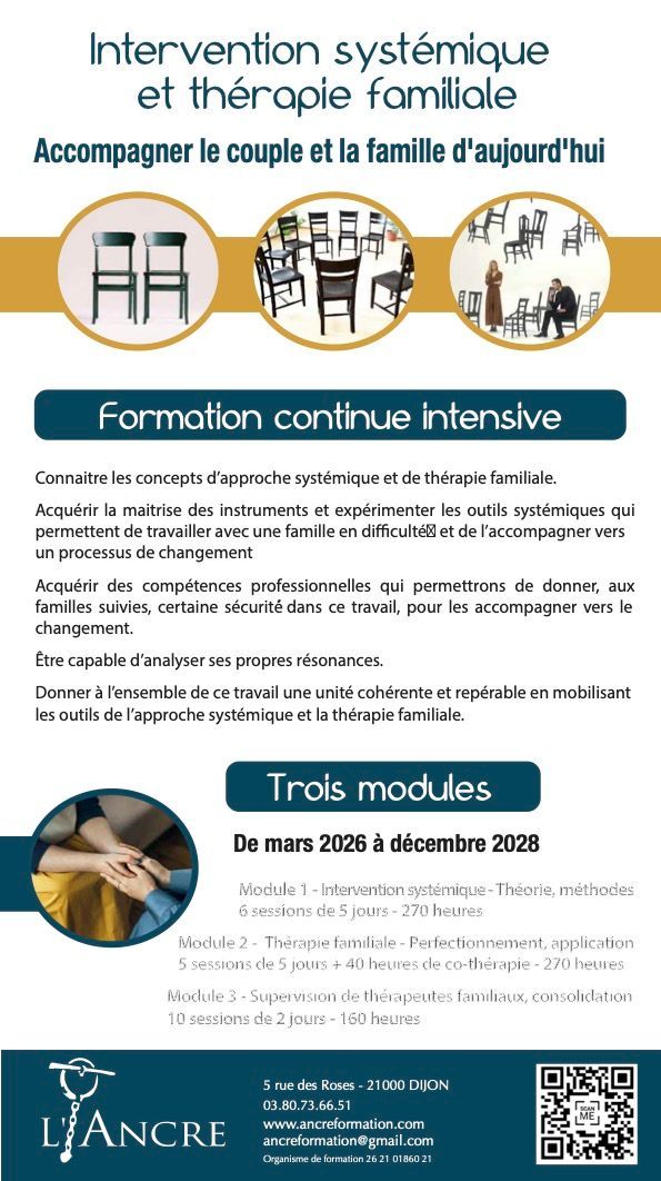 - Elle est un approfondissement du deuxième module de la formation continue intensive en intervention systémique et thérapie familiale.
