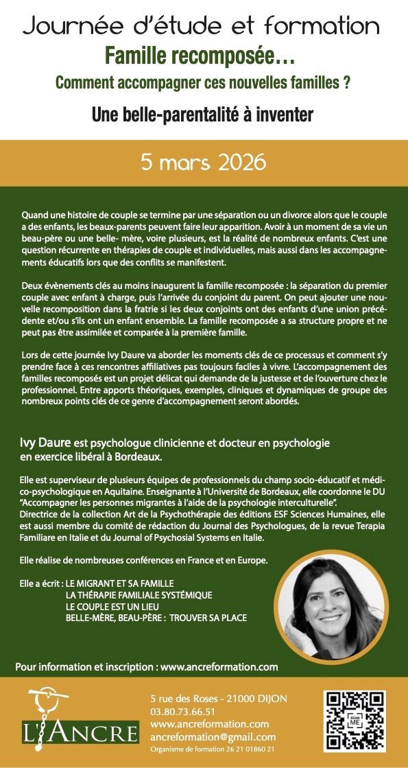 En cas d’annulation moins de 15 jours avant le début de la formation, L’ANCRE facture la totalité du coût à l’institution ou au stagiaire.